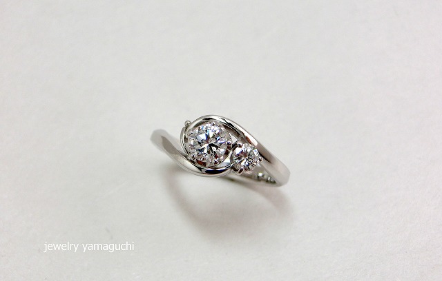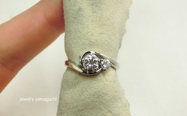 お客様のお持込のダイヤを使用してのオーダーメイドの婚約指輪を作らせていただきました。