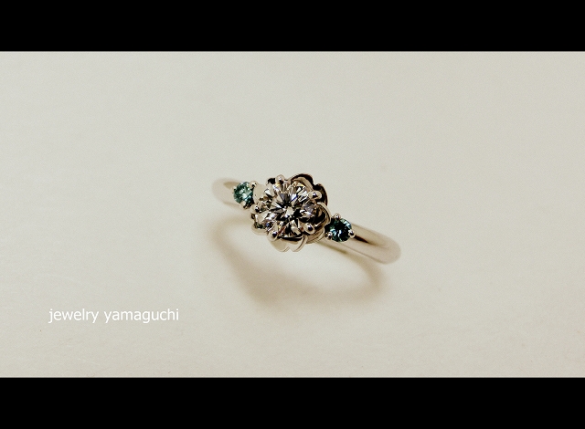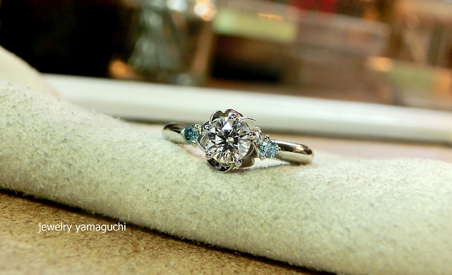 ブログ記事 →ジュエリー山口のblog(Pt900 花風石枠とブルーダイヤが特徴的な婚約指輪)
