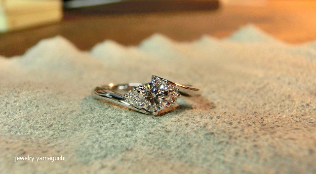 リング部分はやや細身の幅で製作。デザイン自体はシンプルですが、高品質のダイヤを使用する等、こだわりの詰まった婚約指輪ができました!