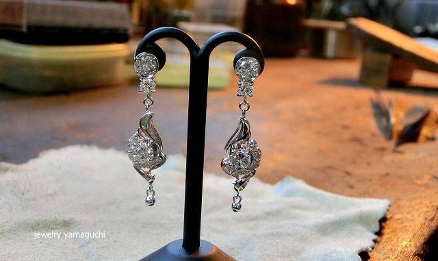 以前オーダー頂いたダイヤのペンダントトップとセットでオーダー頂いたピアスです。ダイヤはペンダントトップに使わなかった物+ピアスのダイヤなど、すべてお持込いただいた物で製作しました。