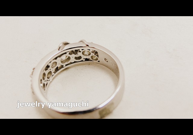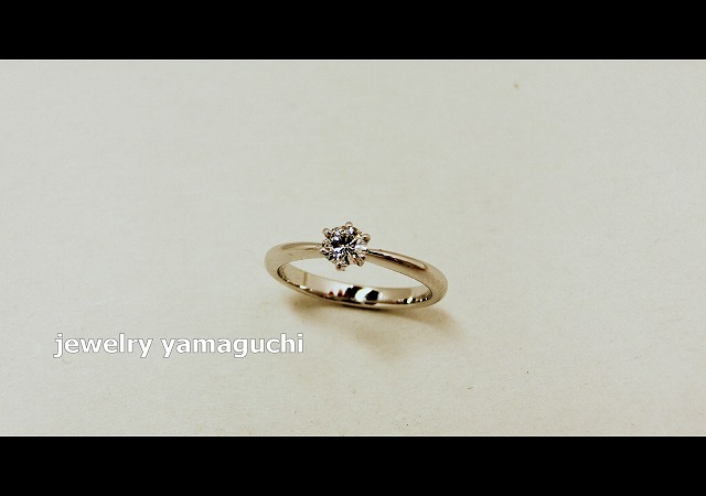 ダイヤは六本爪で石留め。ジュエリー山口の特徴でもある、締りのあるバランスの良いラインに注目ですね。色々な服装に合わせられる可愛く、大人な指輪になりました。